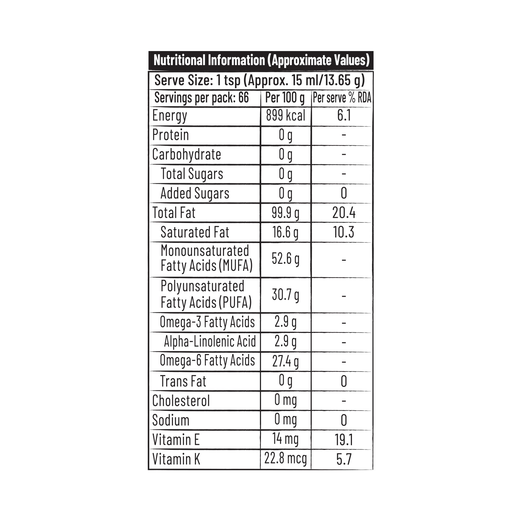 Contains Essential Fatty Acids: Enriched with MUFA, PUFA, and Omega 3 & 6, naturally present in the blend, supporting normal heart and brain health when consumed as part of a balanced diet