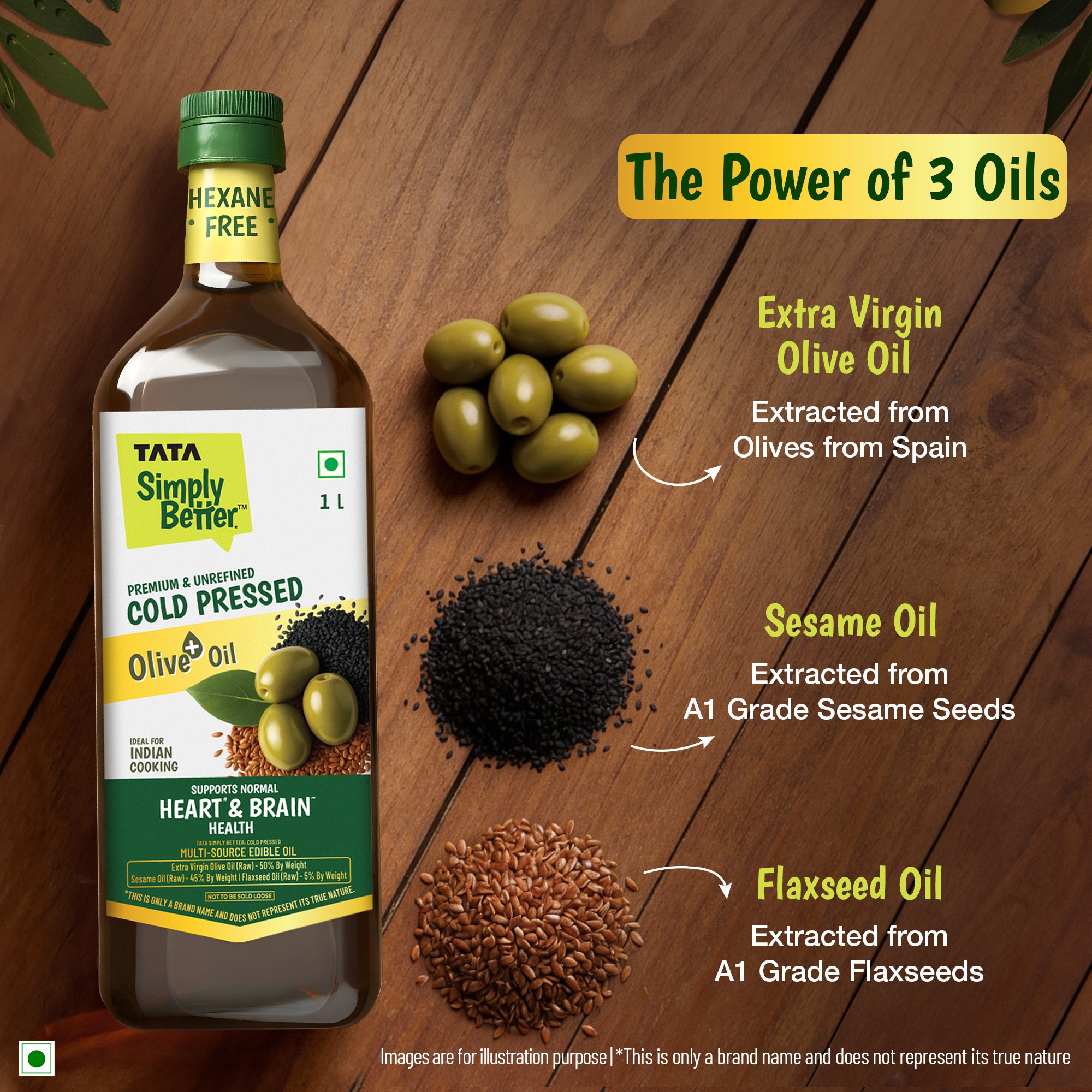 Tata Simply Better Cold Pressed Olive oil+ Blend 1L (Extra Virgin Olive + Sesame + Flax Seed)